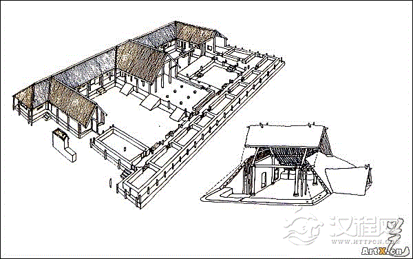 以定居为基础的新石器时代,是我国古代建筑艺术的萌生时期。由于自然条件的不同,黄河流域及北方地区流行穴居、半穴居及地面建筑;长江流域及南方地区流行地面建筑及干栏式建筑。