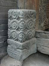 公元1100年以后,某个人把门枕石的外侧部分做的稍高一些,又有人在它的各个面上都雕上了装饰性的线条。有的人为了使门墩更加引人注目,把它做得更高些。后来,又在线条中刻上了图案,图案不断丰富。再后来,门枕石部分和门枕石向上延伸的部分界线逐渐分明,上部成了箱形,下部成了放箱子的台子。