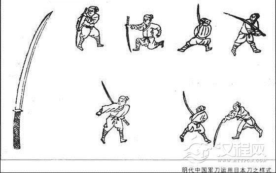 戚继光对日本刀的分析是很中肯的,因此他所统率的部队也都装备了这种仿日本刀样式的长刀,在以短兵相接见长的“藤牌兵”的基本作战方式中,如“懒扎衣势”、“斜行势”、“仙人指路势”、“滚牌势”、“跃步势”、“金鸡畔头势”、“埋伏势”等等,这种由日本刀变化而来的长刀,在与倭寇交锋时,发挥了所向披靡的威力。