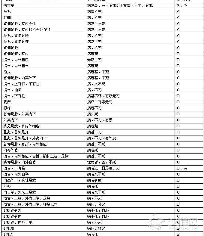 B,不可治愈而死,但延时稍长,一般没有具体的死期,简称“死”,或“病笃”、“病甚”、“毋瘳”而死,或称“病久死”;