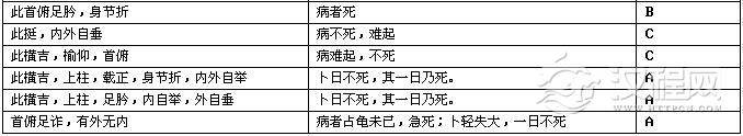A,立即死亡,最严重的是“病者占龟未已,急死”,其次,或占卜的次日即死,或过一日不瘳即死;