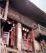 茶山瑶村落一般依山傍水,较大而集中,其住宅均为两层木楼。门面和吊楼部分,雕龙刻凤,涂油抹彩,好似一顶花轿悬挂在山中。清静的吊楼是成年姑娘社交活动的场所。