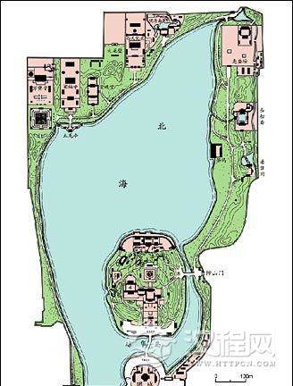 清代西苑北海沿岸建筑分布图
