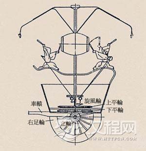 记里鼓车又名记道车、大章车。它是利用车轮带动大小不同的一组齿轮,使车轮走满一里时,其中一个齿轮刚好转动一圈,该轮轴拨动车上木人打鼓或击钟,报告行程,第一个在史书中留下姓名的记里车机械专家,是三国时代的马钧。