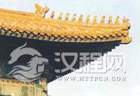 中国古代木构建筑屋顶,除了它风姿飘洒的屋面曲线和华丽动人的屋顶形式外,在正脊、垂脊、岔脊之上,置有大小不等、形状各异的吻兽。正脊两端,面朝里、口衔正脊的,名叫正吻,亦称大兽。在垂脊上有垂兽,在岔脊上有截兽,这些统称“兽头”。在兽头前面,垂脊和岔脊的末端,常常排着一队小兽,领头的是一个仙人,而后依次为龙、凤、狮子、天马、海马、狻猊、押鱼、獬豸、斗牛、行。它的安装数量依建筑物的等级高低和规模大小而定,太和殿上十样俱全(仙人不计在内),其它地位和规模稍低的殿堂,则相应减少。