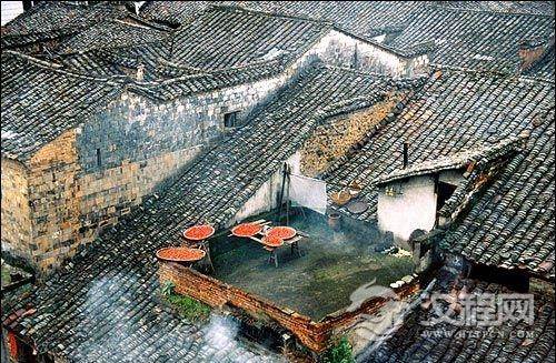 古民居的风貌诠释了它的内涵,徽商怕“露财”,所以形成了这种所谓“宛如城郭”的设计,即中间一个小天井,屋脊的水流入天井,似有“敛财”之意,即所谓“四水归堂”。