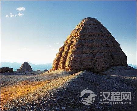 西夏王陵在其都城兴州(今银川市)西郊的贺兰山东麓,共有九座帝陵、七十余座陪葬墓。从已发掘的李遵顼(1211~1223年)陵可了解王陵的特点。地上部分为一有南北轴线的建筑群,群组中部为内城,南北长183米,东西长134米,内城南部为子城,两城之间有两列文臣武士像遗迹,子城以南为碑亭、阙台。陵周有一重外城。内城建筑布局成不规则状,献殿在南门内偏西,靠北门处有一座八边形阶梯状陵台,边长12米,残高16.5米,分成七级,逐渐收缩。当年上部及各层皆有木屋檐,上盖绿色琉璃瓦,墙身饰褚红色,很像一座八边形塔。地宫位于献殿与陵台之间,陵台与地宫没有对位关系,不具有封土冢的作用。地宫由中室和墓道组成,中室两侧带有耳室,耳室的平面为梯形,南北长6.5米,东西宽6.7~7.8米,埋深24.9米。墓室及墓道完全是在黄土层中挖出的洞穴,未用砖包砌,仅于墙的四壁立木护墙板。