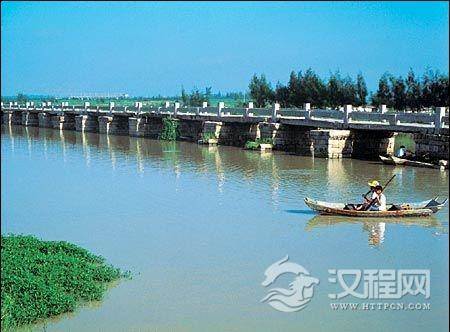 福建晋江安平石桥,跨于晋江、南安二县交界的海湾上。