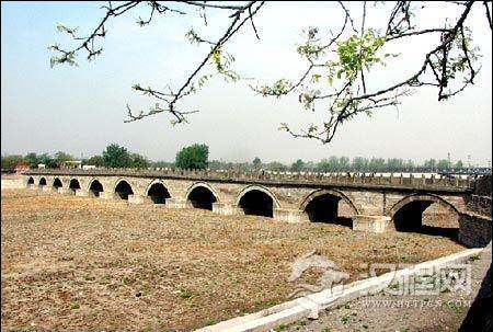 此桥位于北京市西南13公里处的永定河上,是一座多孔连拱石桥,建于金明昌三年(1192年),桥长265米,宽8米,桥高约10米,共十二孔。桥墩迎水面为尖形,以分散水的冲击力,后部为方形,墩下地质为冲积砂卵石,因之打短木桩以加固。该桥不仅结构坚实,还以栏板、望柱的石狮雕刻精美、数量众多而著称。这座至今已达八百多年的古桥,虽在清代有过几次小的修理,但仍较好的保存了原物。此桥曾经通过重达429吨的平板运输车,屹然如常,显示了惊人的承载能力。
