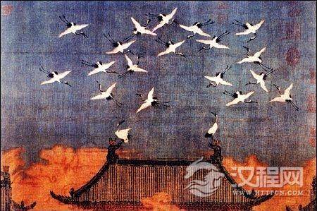 宋徽宗赵佶亲绘的反映皇宫宣德门外观的《瑞鹤图》