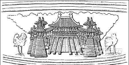 东京宫殿又称大内、宫城,据《宋史·地理志》卷八十五记载:“宫城周四五里,南三门,中曰乾元(明道二年改称宣德),东曰左掖,西曰右掖,东西两门曰东华、西华,北一门曰拱宸。”宫殿包括有外朝、内廷、后苑、学士院、内诸司等部分。宫殿外朝部分主要有大庆殿,是举行大朝会的场所,大殿面阔九间,两侧有东西挟殿各五间,东西廊各六十间,殿庭广阔,可容数万人。西侧文德殿是皇帝主要政务活动场所,北侧紫辰殿是节日举行大型活动的场所,西侧垂拱殿为接见外臣和设宴的场所,集英殿及需云殿、升平楼是策进士及观戏、举行宴会的场所。外朝以北,垂拱殿之后为内廷,是皇帝和后妃们的居住区,有福宁、坤宁等殿。皇室藏书的龙图、天章、宝文等阁以及皇帝讲筵、阅事之处也在内廷。宫殿北部为后苑。后期又在东南部建明堂。从总体布局看,重要建筑群组未能沿一条中轴线安排,其原因是因旧宫改造所致。整个宫殿建筑群中,只有举行大朝的大庆殿一组建筑的中轴线穿过宫城大门。而外朝的文德、垂拱等殿宇,只好安排在大庆殿的西侧,中央官署也随之放在文德殿前,出现了两条轴线并列的局面。标志着宫殿壮丽景象的宫城大门宣德门,从宋徽宗绘的《瑞鹤图》和辽宁省博物馆藏的北宋铁钟上所铸图案可知一二。宣德门为“冂”形的城阙,中央是城门楼,门墩上开五门,上部为带平座的七开间四阿顶建筑,门楼两侧有斜廊通往两侧朵楼,朵楼又向前伸出行廊,直抵前部的阙楼。宣德楼采用绿琉璃瓦,朱漆金钉大门,门间墙壁有龙凤飞云石雕。