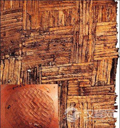 河姆渡新石器文化遗址出土的苇编残片,用于干阑式建筑铺垫地板用