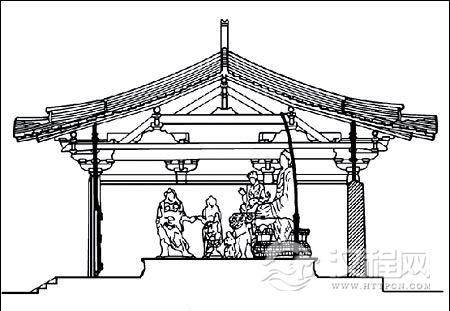 南禅寺大殿架构断面透视图