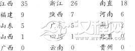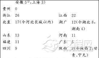 东南四省占了全国总数76.5%,北方四省仅占16%,此外中南西南三省合占7%。除西南广西、云、贵三省无人外’奇怪的是,畿辅之地北直竟亦无人,十五省中缺了四省,总的分布形势基本与宰辅相同,而荣枯之差更大。这应该是由于宰辅出自科举,科举各省有定额,故分布面比较广,比较平衡,而理学的授受传播则自应由近而远,僻远处更难为传播所及。可见科举和儒术虽然是两回事,二者都足以代表当时文化盛衰的地区差异。