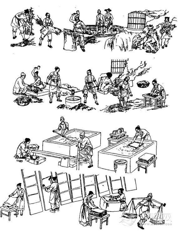 现在讨论竹纸的起源。南宋人赵希鹄在《洞天清录集》中说,东晋书法家王羲之、王献之父子使用浙江绍兴竹纸写字,因为东晋南迁后难得北方纸,而王氏父子又长期生活在浙江绍兴。从此以后很多人相信晋代已有竹纸。还有人将晋人稽含(公元263—306年)的《南方草木状》中的“竹疏布”理解为竹纸。其实,赵希鹄所见到的写在竹纸上的王羲之、王献之“真迹”乃宋人临摹品或膺品,不能因此说晋代有竹纸。至于《南方草木状》中的竹疏布实指竹席,而不是纸。在唐以前文献中迄今尚无关于竹纸的可靠记载,亦无实物遗存。竹纸起源于晋朝之说是难以成立的。较可靠的记载是从唐朝才出现的,只有这时在技术上才是可行的。9世纪的李肇《唐国史补》卷下谈到唐代各地纸的种类时提到:“纸则有越(今浙江)之剡藤,蜀之麻面……韶之竹。”韶即韶州,今广东韶关,这一带自古盛产竹,明清时仍以竹纸闻名。唐人段公路《北户杂录》谈到广东罗州香皮纸时,也顺便提到此纸“不及桑根、竹膜纸”,即桑皮纸与竹纸。10世纪人崔龟图为这句话加注时说:“睦州出之。”睦州在今浙江淳安,说明唐时淳安一带产桑皮纸及竹纸。由此看来,9—10世纪时竹纸已在广东、浙江初露头角。到宋代以后才大显身手。但唐代的竹纸产量很小,而且还敌不过麻纸及皮纸,只是一种刚刚出世的新纸种。