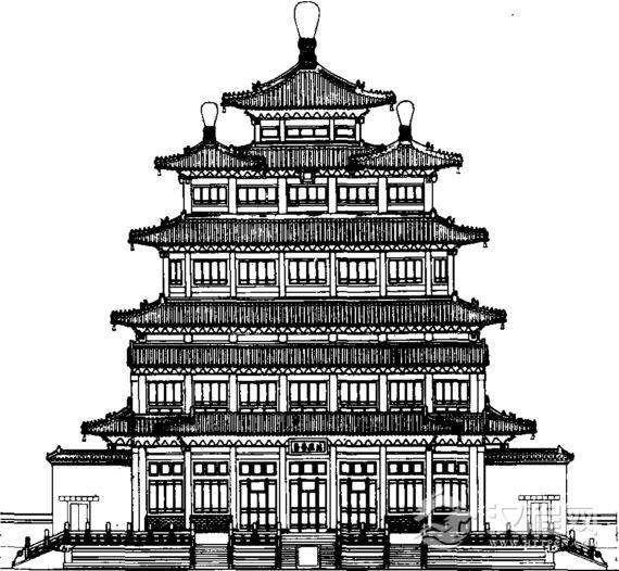图15 河北承德普宁寺大乘阁立面图 (选自《中国古代建筑史》)