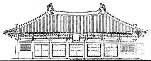 图14 山西五台山佛光寺大殿立面图 (选自《中国古代建筑史》)