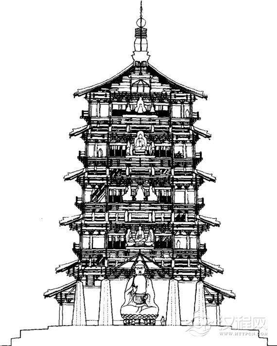 图17 山西应县佛宫寺释伽塔剖面图 (选自《中国古代建筑史》)