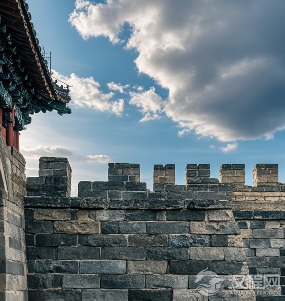 飞檐斗拱的设计更是精妙绝伦,斗拱层层叠叠,犹如一朵朵盛开在半空的花朵,它们相互咬合、承托,既有着力学上的合理性,分担了屋顶的重量,又营造出一种极具层次感和立体感的视觉效果。斗拱的构件数量繁多,每一个构件都经过工匠们精心打磨,形状精准,拼接处严丝合缝,其制作工艺极为复杂,需耗费大量的人力和时间。飞檐则向外伸展,犹如鸟儿展翅欲飞,檐角处还悬挂着风铃,风铃的造型独特,有的呈钟形,有的似花瓣状,材质多为青铜或黄铜,表面还刻有精美的纹饰,微风拂过,叮当作响,那清脆的声音在城墙上空回荡,仿佛在诉说着久远的故事。