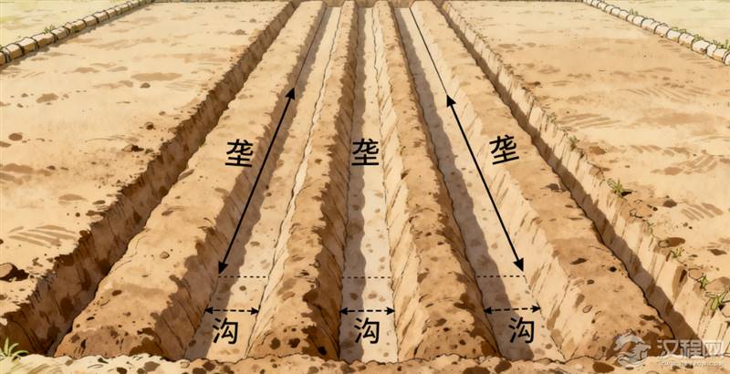 那么,代田法到底神在哪里?其实它的核心原理,可以用一句话概括:让土地“部分休息,部分工作”。具体操作起来,充满了古人的巧思。他们不再像以前那样漫田撒种,而是把一亩地(当时约合现在0.7亩)分成三条长垄和三道长沟。垄,就是高出来的土埂;沟,就是低下去的洼地。春天播种时,种子全都播在深沟里。沟底能保水,幼苗能避风,这第一关就提高了成活率。随着禾苗一天天长高,农人们会做一件关键的事:中耕除草。每次除草,都会把垄上的土一点点刨下来,培在禾苗的根部。到了夏天,原先的沟变成了垄,原先的垄变成了沟。神奇不?去年长庄稼的地方(垄),今年就在休养生息;去年休息的地方(沟),今年承担起了生产的任务。土地就这样,在年复一年的轮换中,恢复了地力。