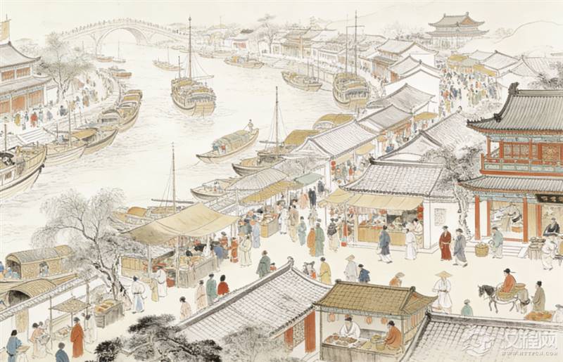 进入唐宋时期,运河迎来了它的黄金时代。我常常想起北宋画家张择端的《清明上河图》,那幅长卷生动捕捉了汴河(隋唐大运河通济渠的一段)两岸的繁华景象。画面中,船只密密麻麻,商贩云集,茶馆、酒肆、旅店鳞次栉比。那不是一条普通的水道,而是一条流动的街市。这幅画作记录了大运河系统在宋代的巅峰,尽管汴河本身后来湮没,但那因漕运而生的烟火气,却成为运河文化不灭的印记。