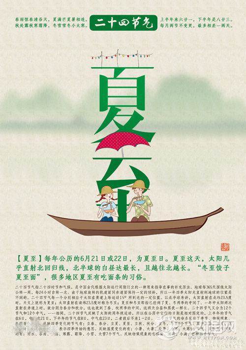 夏至:炎热的夏天来临。太阳到了北边太阳能到的最及至的地方(北回归线)