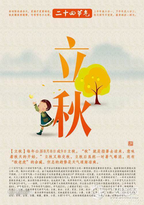 立秋:秋季的开始。