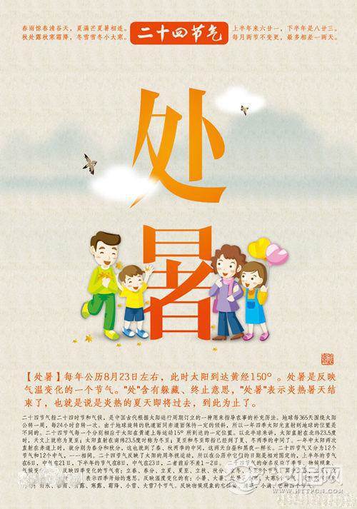 处暑:处是终止、躲藏的意思。处暑是表示炎热的暑天结束。
