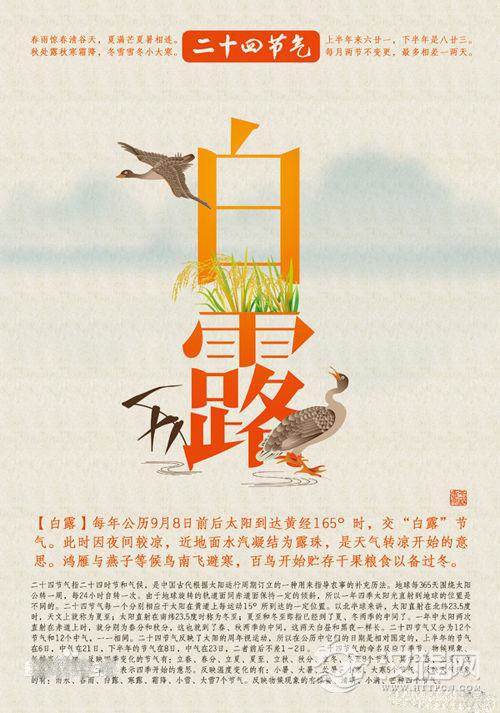白露:天气转凉,露凝而白。