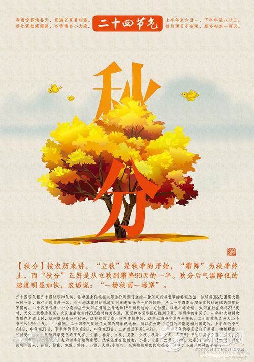 秋分:昼夜平分。