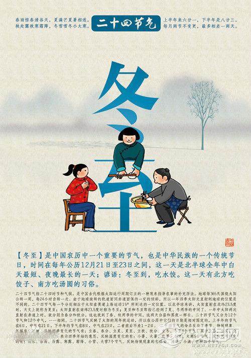 冬至:寒冷的冬天来临。太阳到了南边太阳能到的最及至的地方(南回归线)