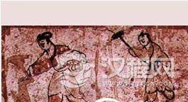 左图为戴毡帽、穿袍服的猎人,甘肃嘉峪关出土的砖画。右图为穿袍服的农民及农妇,甘肃嘉峪关出土砖画。近年在甘肃嘉峪关东北的戈壁滩上,发现一处魏晋时期的墓群,其中有六座墓室的墓砖上绘有彩画,共有六百余幅。砖画的内容几乎都是现实生活的各种场景,包括采桑、耕田、狩猎、畜牧、屯垦、庖厨、宴饮等等,其中描绘劳动者形象的,就有二百多幅。如农民的袍服、猎户的毡帽、信使的巾帻、牧民的绑腿、妇女的围裳等都被刻画得惟妙惟肖。