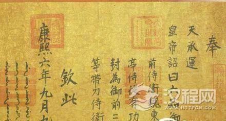 看古装电视剧,总不会有皇帝颁发一些诏书,由太监负责传达,我们经常可以听到:“奉天承运,皇帝诏曰,……,钦此。”比如,康熙六年九月九日颁发的诏书上写道:“奉天承运,皇帝诏曰,六品御前侍卫魏东亭侍从有功,封为御前三等带刀侍卫,钦此。”