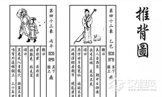 2.《推背图》之谜 《推背图》是中华预言书中最为著名的奇书之一,相传是唐朝贞观年间,由预言大师李淳风和袁天罡对唐朝及以后朝代重要事件的预测。全书共六十图像,以六十甲子和卦象分别命名。因为它预言的准确,使历朝历代的统治者心惊,一直被列为禁书。