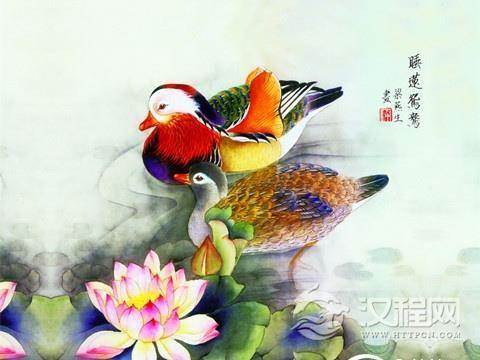 魏人嵇康在《赠兄秀才入军诗》之一中写道:“鸳鸯于飞,肃肃其羽。朝游高原,夕宿兰渚。邕邕和鸣,顾眄俦侣。俛仰慷慨,优游容与。”嵇康在诗中描述了自己与兄长陶醉于山水之间的自在与快乐,那长满兰草的小洲,一汪清澈的湖水,声声相和的水鸟……由此,这首诗也是用“鸳鸯”来比喻兄弟和睦友好的。