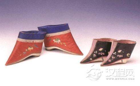 古代小脚女人的雨鞋。鞋跟不高,鞋底是皮质的或者木质的,鞋帮虽然是布的,但是上边有一层桐油,防止脚受潮。但女子脚骨损伤后在下雨天会疼痛难忍,尽量少出门。