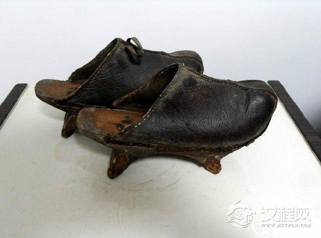 古代的高跟鞋。厚厚的后高跟,能起到防雨的目的。但是前脚掌不能着地,穿起来是不如前几款舒服的。