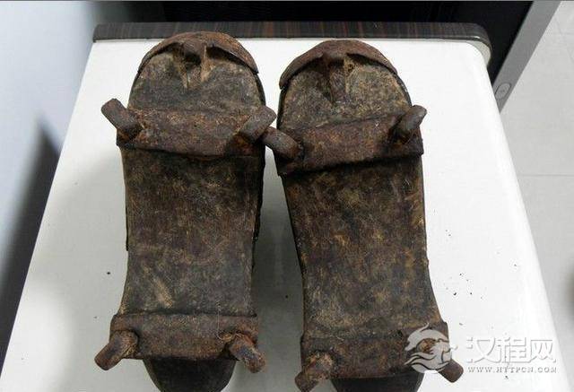 当官的雨鞋就高级多了,他们的鞋面用牛皮缝制,鞋底是层木板,反面用铁包裹一层,还有铁钉镶嵌在上边。