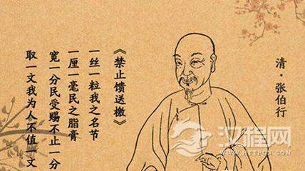 张伯行出任过很多要职,尤其是做封疆大吏时,位高权重,其僚属门生等携礼拜谒,他都一律谢绝。在福建巡抚任上,张伯行写了一篇《禁止馈送檄》,张榜于官署、巡抚衙门外:“一丝一粒,我之名节;一厘一毫,民之脂膏。宽一分,民受赐不止一分。