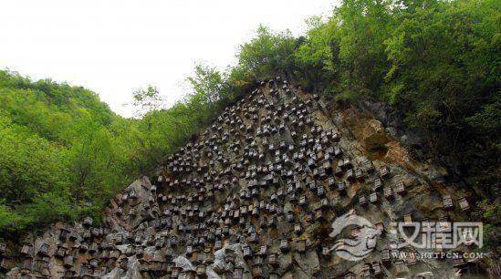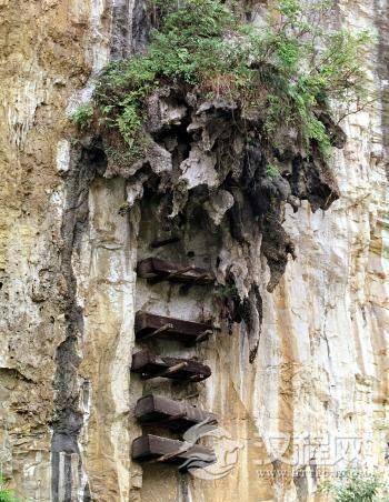 与其他民族不同的是,僰人的葬式采用悬棺葬,即把棺木置于几十米高的悬崖峭壁上。棺木用整木剜凿而成,不施漆,质地异常坚硬。