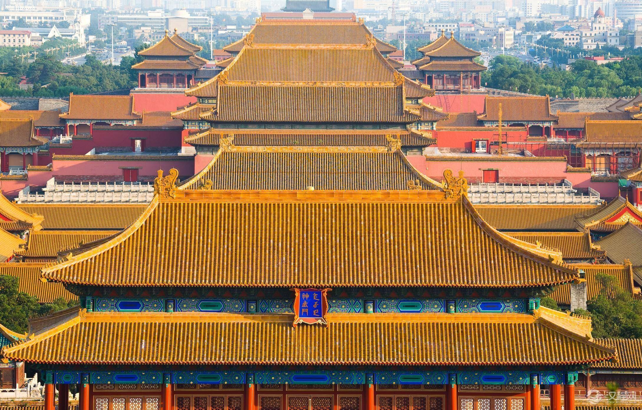 坐落于北京的紫禁城,建于1406—1420年,它是明清两代的皇宫。据说,那里最早有9999间房屋。紫禁城分为内城、外城两个部分。三座主要的宫殿沿着一条中轴线对称排列。