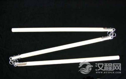 五、双截棍 马上就能让人联想到李小龙的彪悍武器,外表平淡无奇,实用性超强。最初的很多双截棍都是两个木柄,中间由马鬃制成的绳子相连,然后糊上一层泥巴,等待几年之后木头就可以变得坚硬而有韧性。双节棍又名二节棍、双节棍、两节棍、二龙棍,是中国古代流传下来的一件奇门武器。短小精悍,威力巨大,普通人也可以打出160斤以上的力。熟练后有如两臂暴长,如虎添翼。