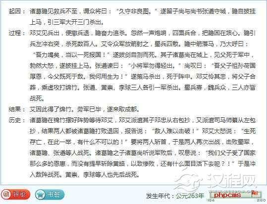 魏军攻陷绵竹在三国演义中的记载(出自三国演义电子辞典)