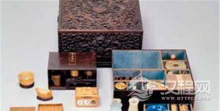 打开来看,不同的空间摆放着大小不同的珍玩,严丝合缝,没浪费一寸地方;一旦合起,又是个再规矩不过的普通盒子。从外观上看,怎么也看不出盒内会藏着如此乾坤。