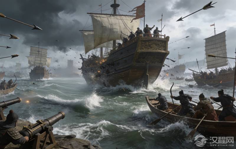 1161年11月8日,完颜亮下令渡江。金军战船齐发,鼓声震天。他们多为临时建造的平底船,不擅水战,但仗着人多势众,如乌云压顶。虞允文亲临前线。他策马于江岸,看到一员将领畏缩后退,立刻拍马上前,厉声道:“汝胆略闻四方,今立阵后,儿女子态耳!”激将法奏效了。将士们见文官尚且不避箭石,士气大振。