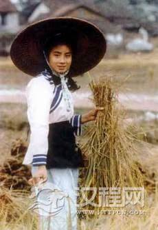 毛南族服饰毛南族男子有着唐装的,也有穿琵琶襟上衣的。妇女则穿右襟上衣,宽脚滚边裤。上衣的襟边及袖口有三道镶边,一宽两窄,十分别致。毛南族衣料多为青、蓝色,以银质的手镯、项圈、麒麟等装扮。小姑娘系一块绣着精美花纹的长方形围腰。“顶卡花”(花竹帽)是毛南族手工产品中的精品,帽顶编几十个蜂窝眼,内衬以油纸及花布。