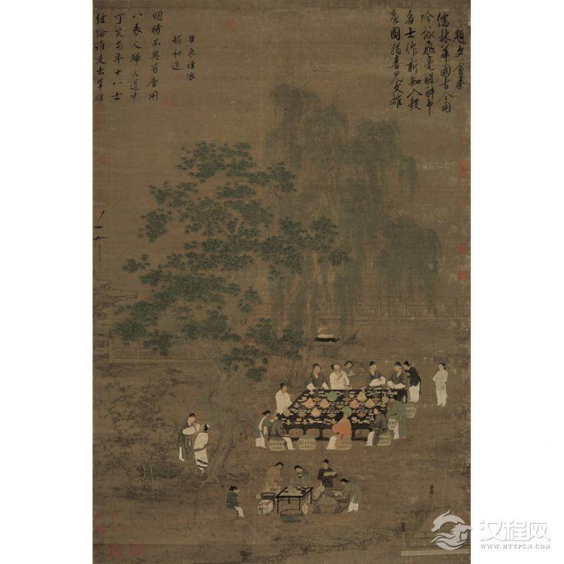 《文会图》宋徽宗赵佶(1082-1135),擅诗文,精书画。他的“瘦金体”书法和工笔画在中国美术史上独树一帜。