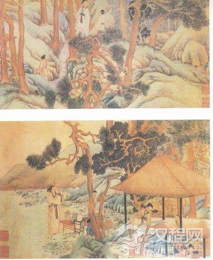 与前人相比,他们更加强调了品茶时的自然环境的选择和审美情趣的营造,这在他们作品中得到了充分的反映。画作中高士们或于山间清泉之侧抚琴烹茶,而泉声、风声、琴声、与壶中汤沸之声融为一体。或于草亭之中相对品茗,或独对青山苍峦,目送江水滔滔。