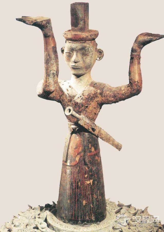▲信阳楚墓彩绘木俑