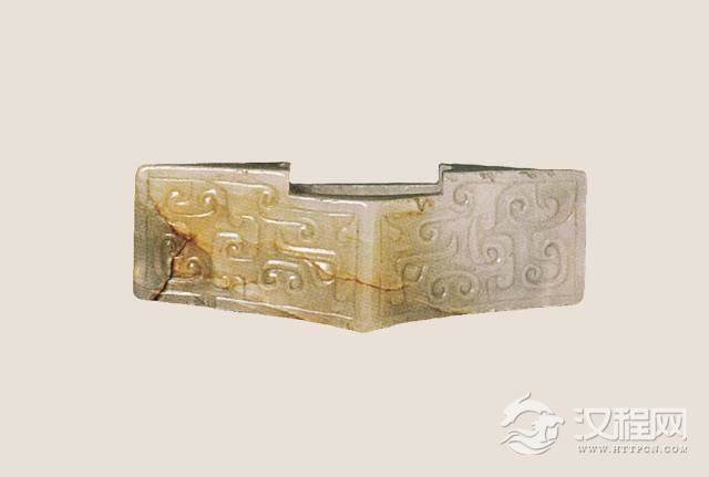 ▲战国 玉兽面纹剑格 长5.5cm,宽1.9cm,厚2cm 故宫博物院藏